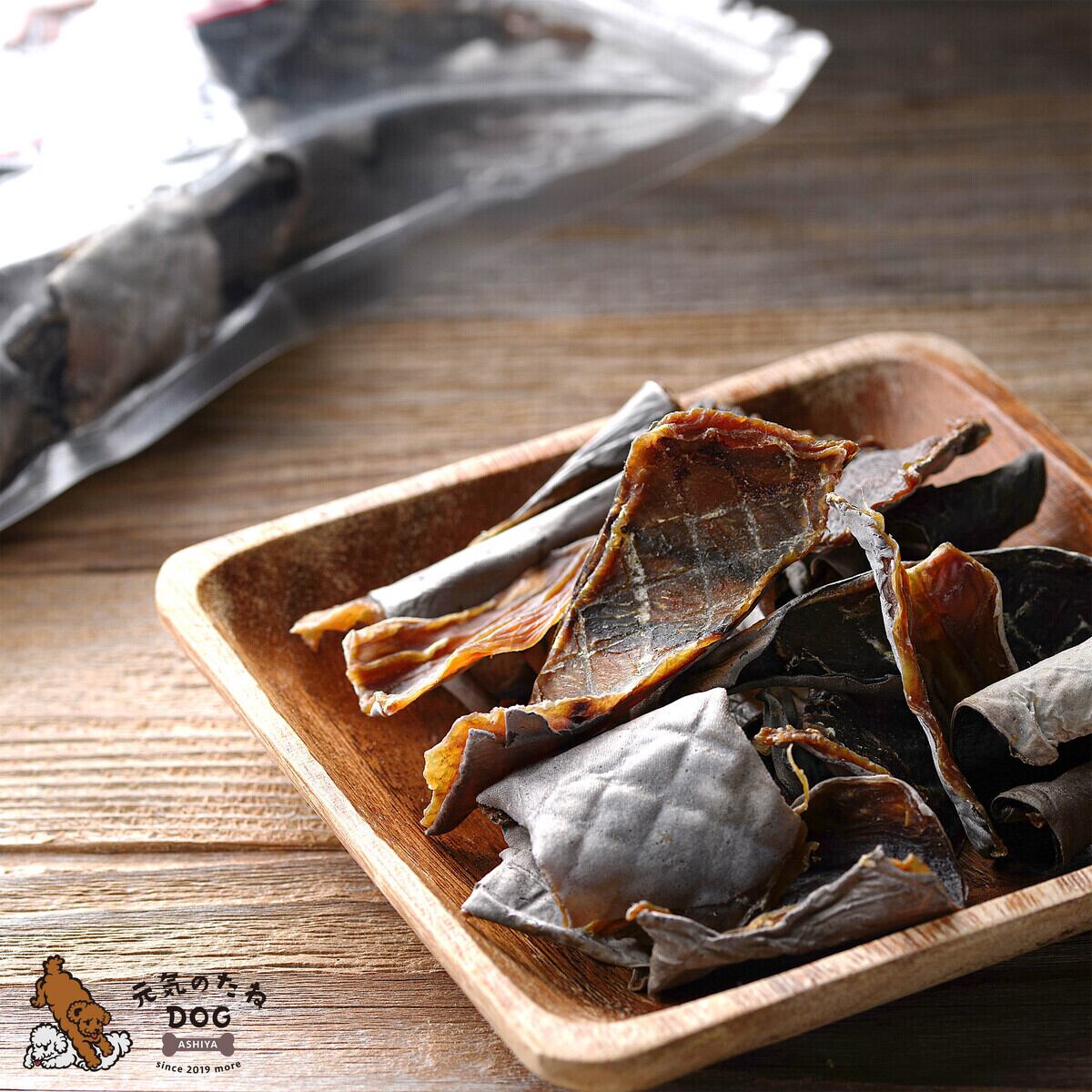 ■国産 無添加 保存料不使用 無漂白、低カロリー、低脂肪、高たんぱくです。お魚特有の香りがしてお魚好きな愛犬には食いつき間違いなしです!ハサミで愛犬のベストな大きさにカットしてあげてください。お口の小さなわんちゃんでもOKです。
