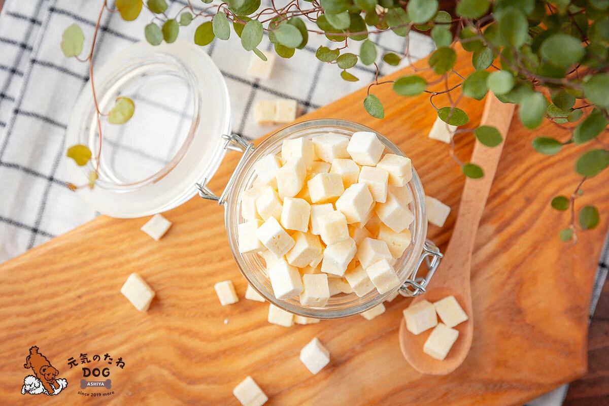 ●チーズは別名「白いお肉」とも呼ばれるほど、体つくりの基礎となるタンパク質が豊富なので、わんちゃんはもちろん小さいお子様からご年配の方までご一緒にお召し上がり頂けます。