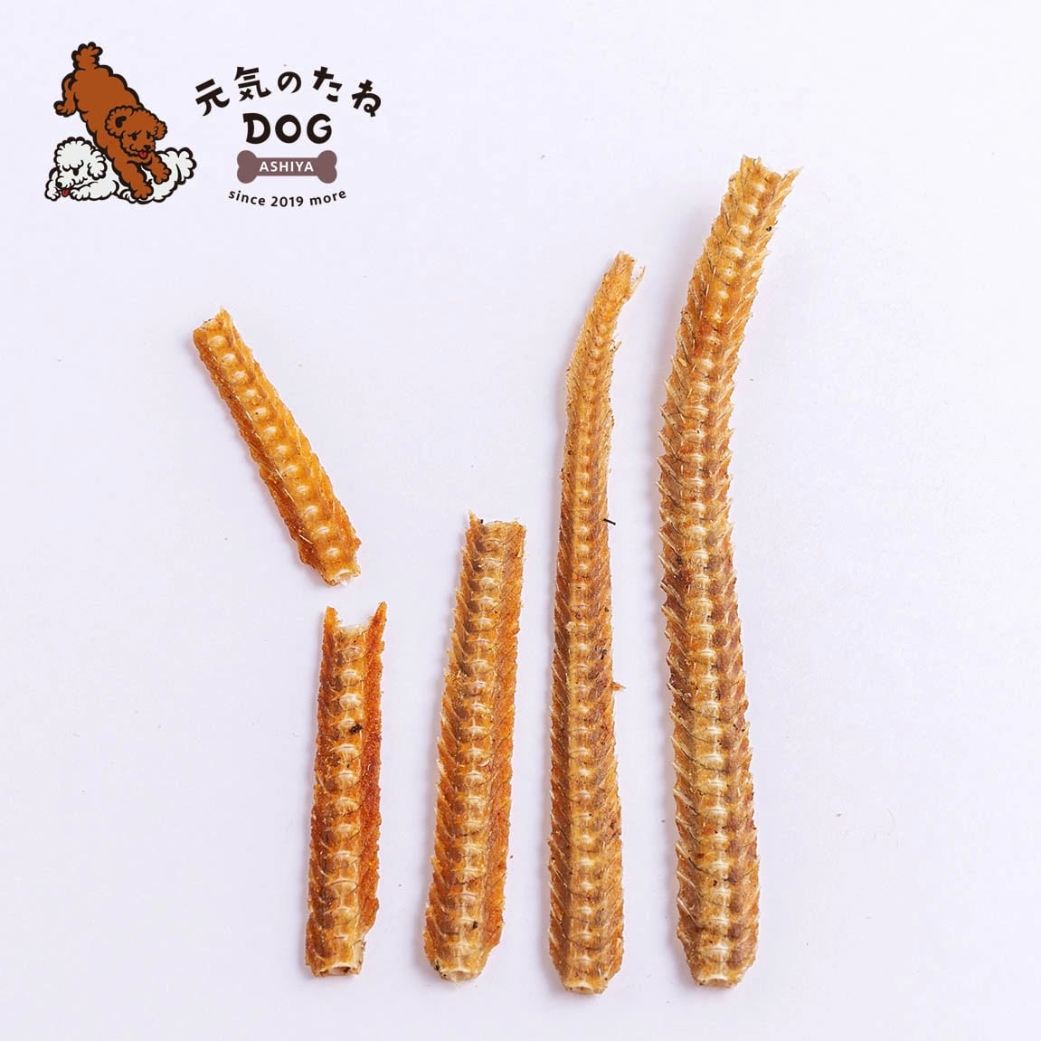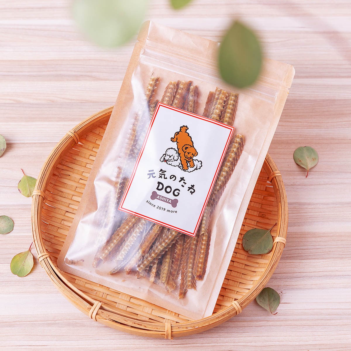 ■わんちゃんは人間と比べるとカルシュウム摂取量が約14倍必要と言われています。だからと言って硬い「骨」「ジャーキー」だと歯を傷める可能性があるので弊社としては小さいわんちゃんでも手軽に食べれる「うなぎぽりぽり」をおススメしております。