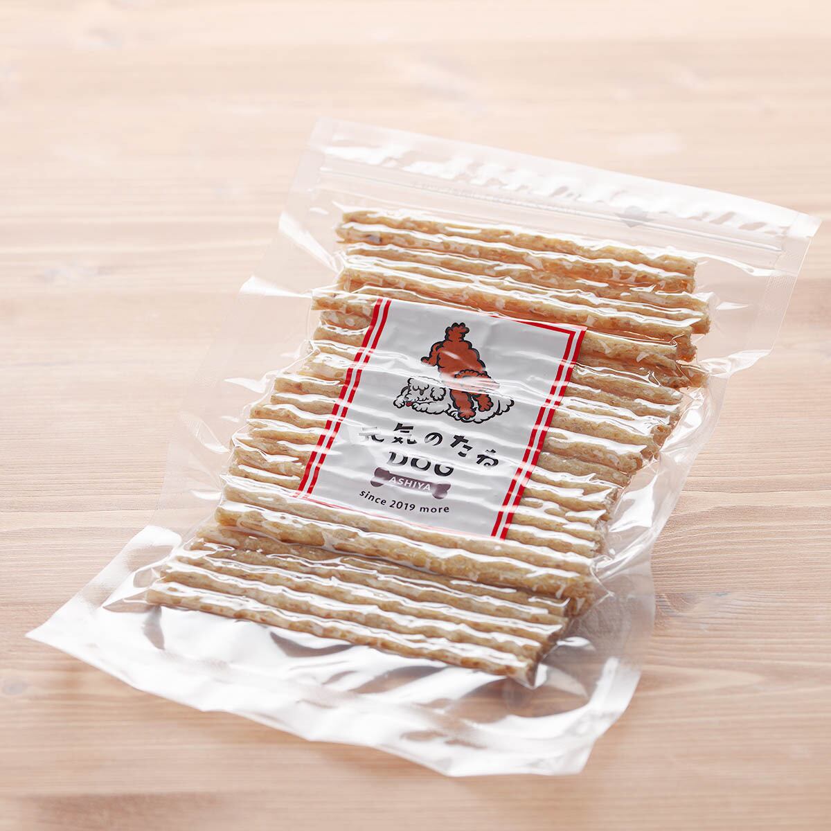 愛犬の健康と笑顔を願ってつくった「国産 白馬ロール」は、国産馬の皮を使用し、保存料・着色料・香料などの添加物を一切加えずに仕上げたスティック状のおやつです。